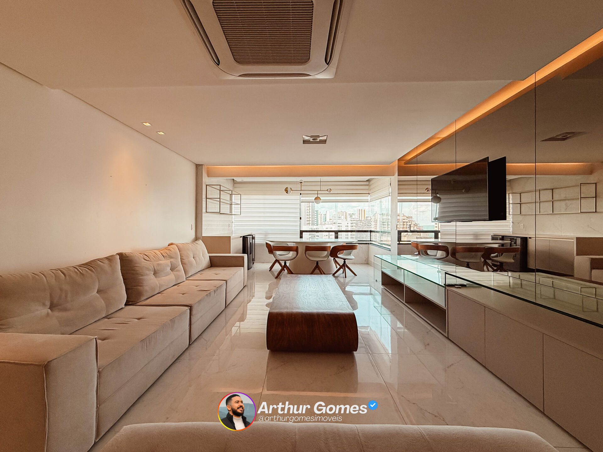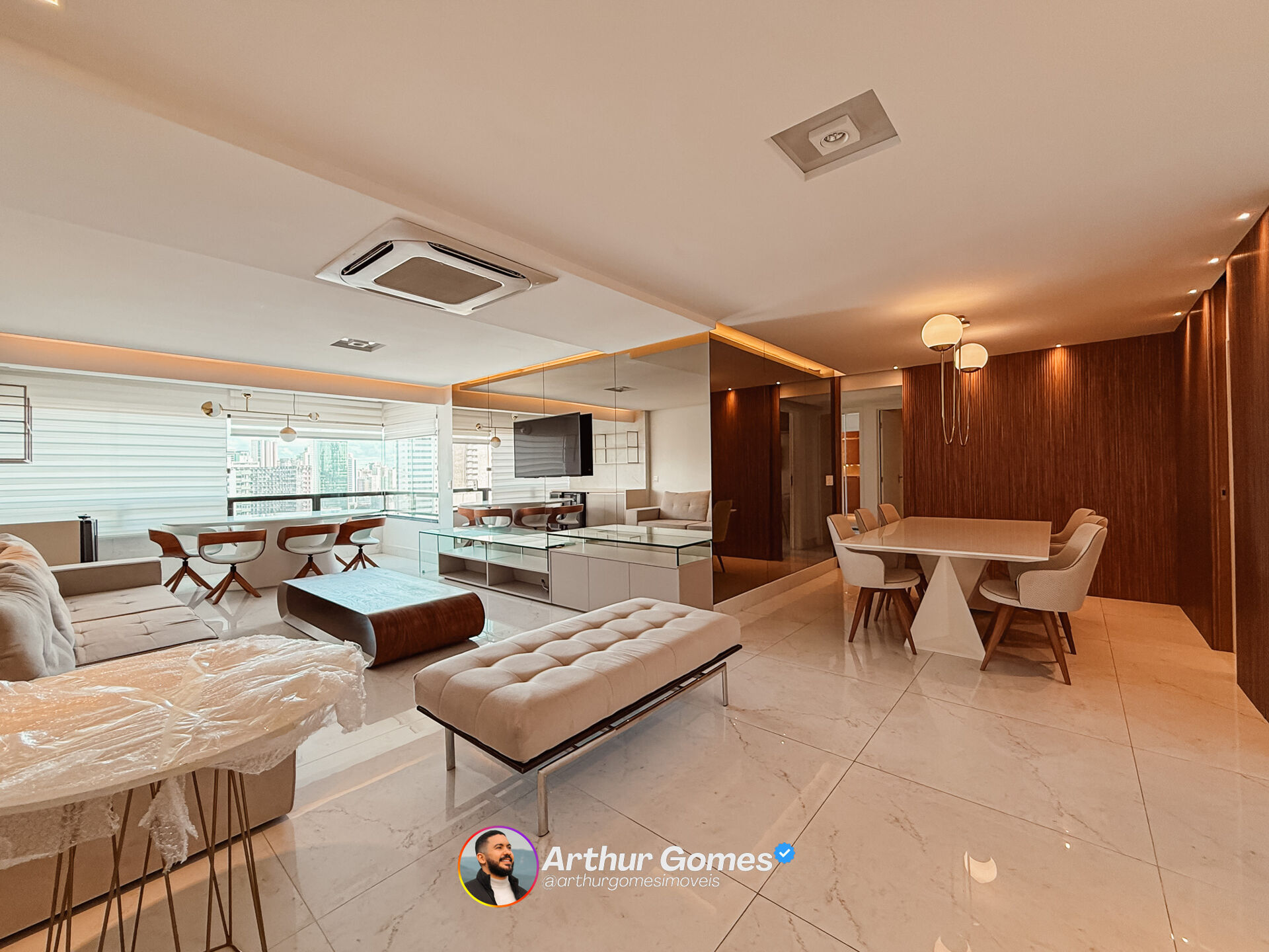 -Mobiliado com: Ar-Condicionado em todos os cômodos, cooktop, forno, coifa, maquina lava e seca, lava-louças, sofá, mesas e cadeiras