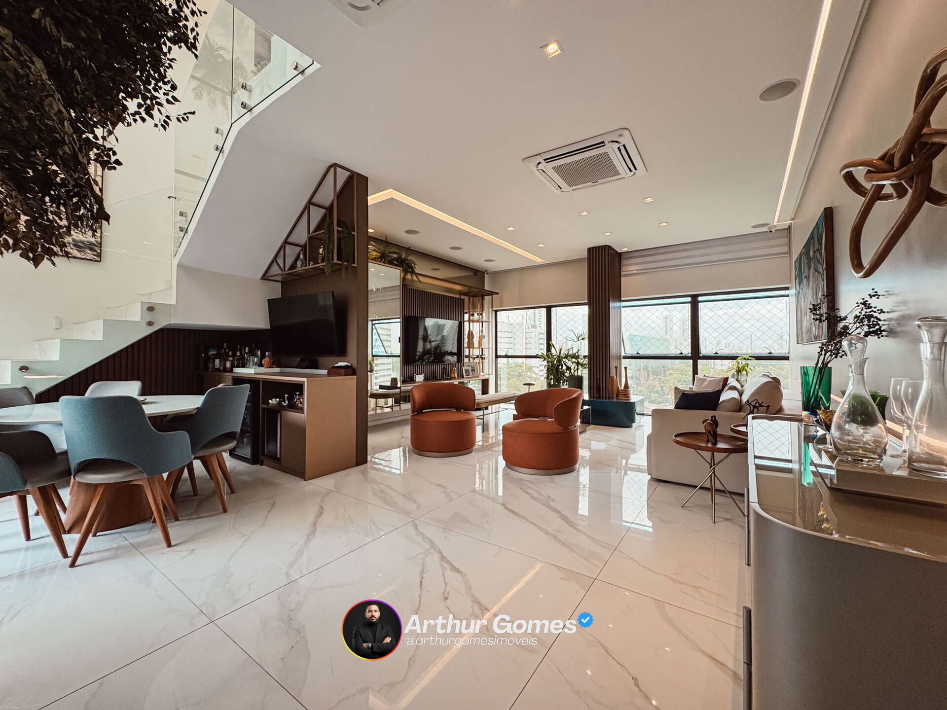 -Sala para 3 ambientes com pé-direito duplo e climatizada