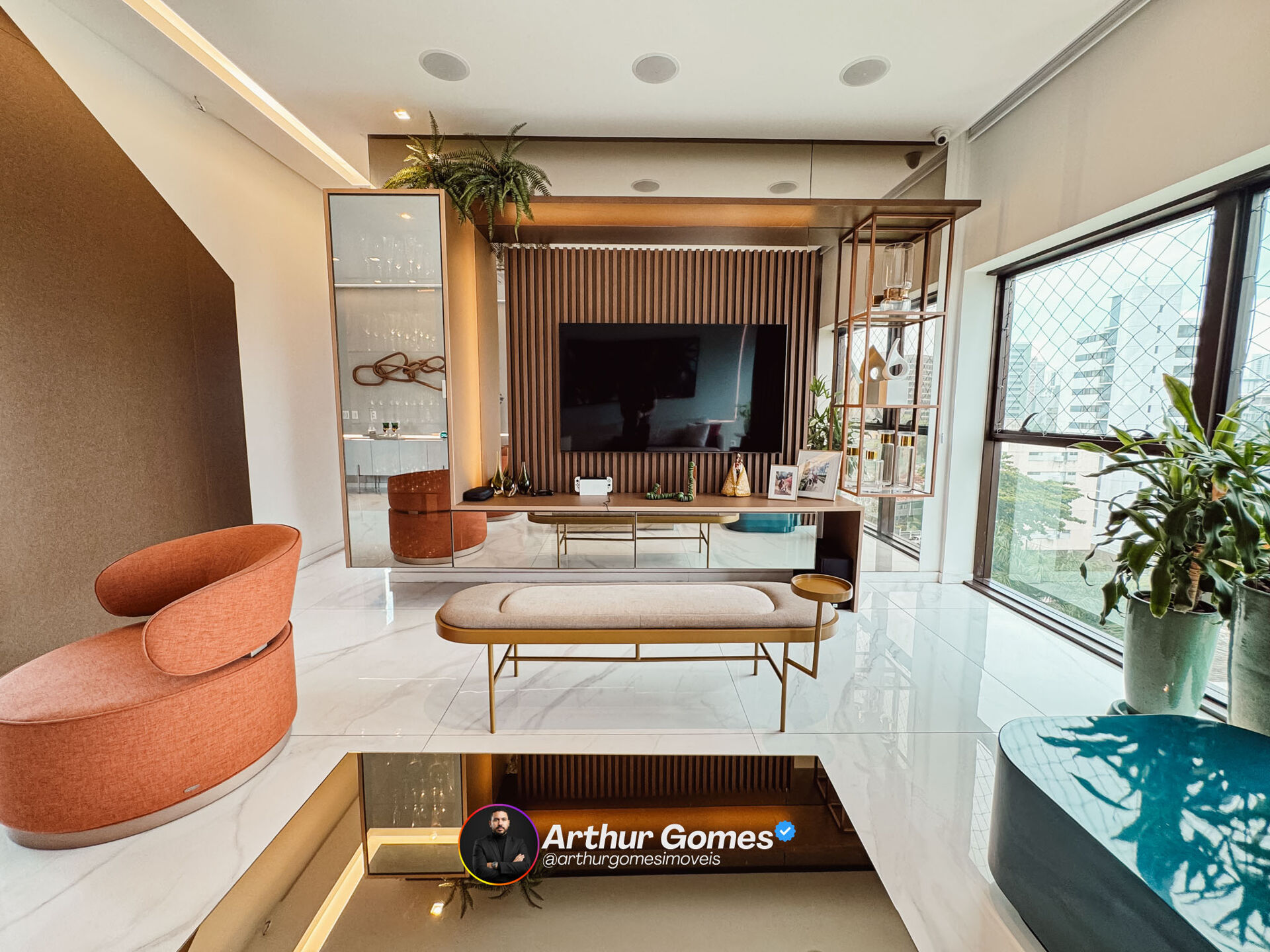 -Hall de entrada com pé direito duplo e cascata